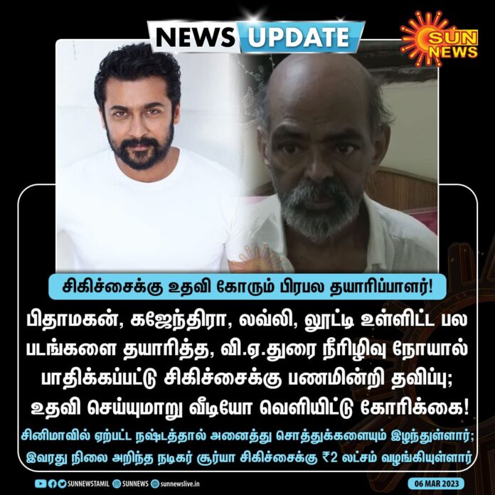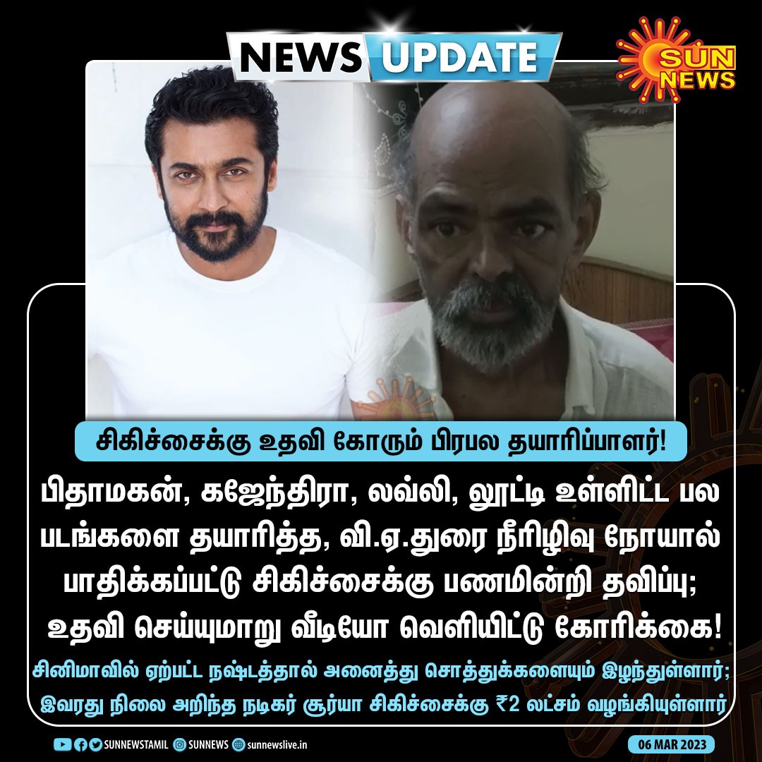 சற்று முன்பு மதிப்பிற்குரிய திரு கருணாஸ் அண்ணன் அவர்கள் என்னை தொடர்பு கொண்டார்.. அண்ணா.. வி ஏ துரை சார் அவர்களின் உடல்நிலை அறிந்து மிகவும் வேதனையுற்றேன்..
