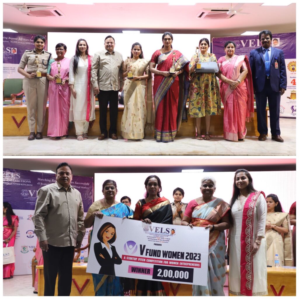 It was even more merrier to support and recognise few new generation women entrepreneurs, the winners of the VELS’ VFund 3.0 startup pitch 2023 and award Rs 2Lakhs each of seed money for their innovative business ideas.