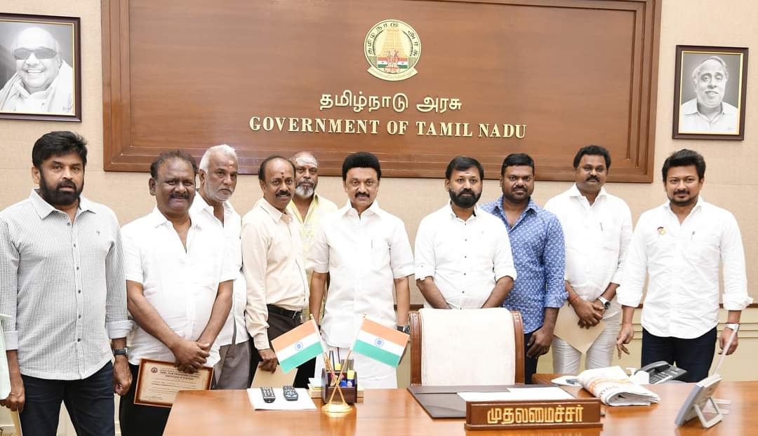 தமிழ் திரைப்பட தயாரிப்பாளர் சங்கத்தின் புதிய நிர்வாகிகள் – தலவர் திரு. முரளி என்.இராமசாமி, செயலாளர்கள் திரு. எஸ்.கதிரேசன், திரு. ஆர்.ராதாகிருஷ்ணன், துணைத் தலைவர் திரு. ஏ.தமிழ்குமரன், இணைச்செயலாளர் திரு. எஸ்.செளந்தரபாண்டியன், செயற்குழு உறுப்பினர்கள் திரு. மாதேஷ், திரு. சுபாஷ் சந்திரபோஸ், திரு. விஜயமுரளி ஆகியோர் மாண்புமிகு முதலமைச்சர் திரு. M. K. Stalin அவர்களை சந்தித்து வாழ்த்துப் பெற்றார்கள்.