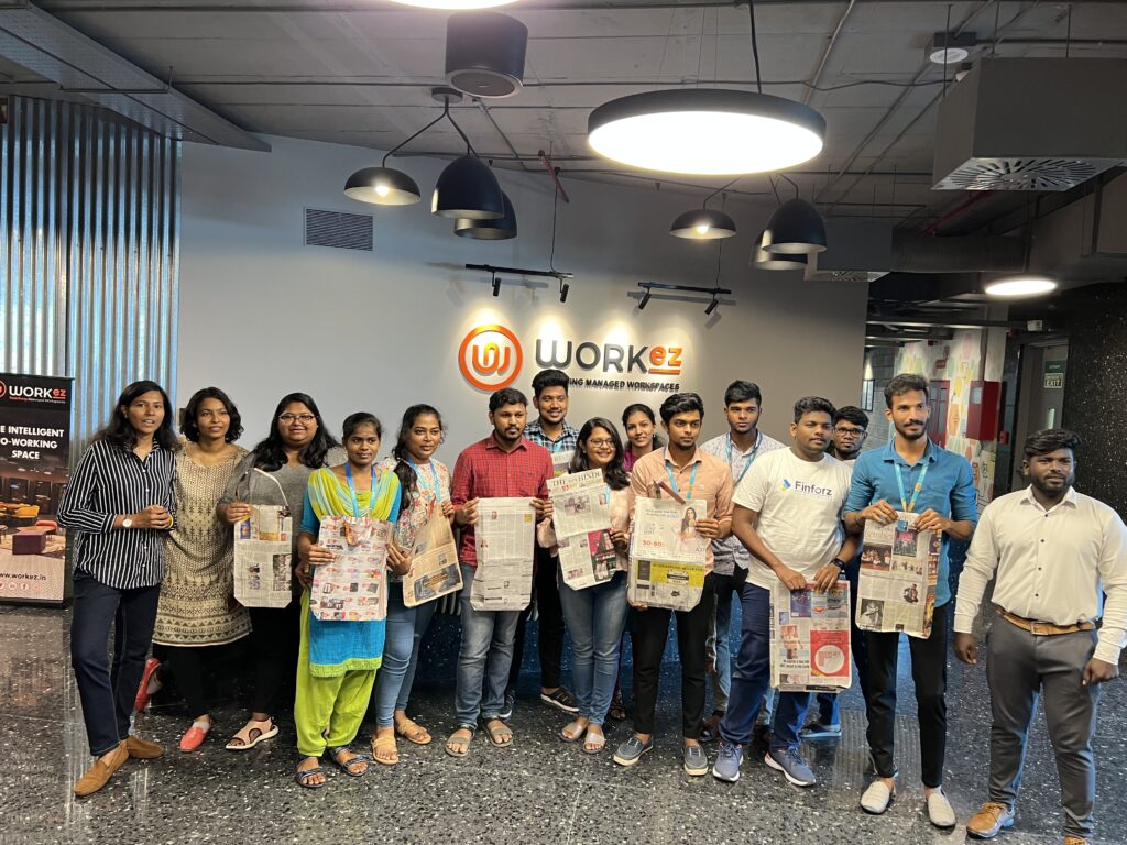 Chennai, 6 June 2022 – Chennai’s largest managed office and coworking space provider, Work Easy Space Solutions Private Limited (WorkEZ) commemorates World Environment Day across its centres in Chennai. In a partnership with Vidhai Recycling, WorkEZ orgazined a workshop to showcase how we can reduce household waste by upcycling items like clothes, plastic bottles, old newspapers etc. Vidhai Recycling conducted a one hour workshop on 6th June 2022, Monday, where participants tried their hand at T-Shirt upcycling and making bags out of old newspapers.