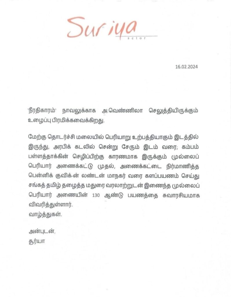 Home Uncategorized நீரதிகாரம் நாவலுக்காக அ.வெண்ணிலா செலுத்தியிருக்கும் உழைப்பு பிரமிக்கவைக்கிறது - நடிகர் சூர்யா Uncategorized நீரதிகாரம் நாவலுக்காக அ.வெண்ணிலா செலுத்தியிருக்கும் உழைப்பு பிரமிக்கவைக்கிறது – நடிகர் சூர்யா By admin 17/02/2024 0 15 Share Facebook Twitter Pinterest WhatsApp Share Facebook Twitter Pinterest WhatsApp Previous articleSanchana Natarajan, an actress known for her linguistic elegance in TamilNext articleகெளதம் மேனன் இயக்கத்தில் வருண் நடிப்பில் உருவாகியுள்ள ‘ஜோஷ்வா இமை போல காக்க’ adminhttp://talksofcity.com RELATED ARTICLES Uncategorized Divya Movie Review 18/03/2026 Uncategorized From Page to Space: How Ryan Gosling Came Aboard Project Hail Mary 18/03/2026 Uncategorized Spider-Man Swings into a New Era with ‘Spider-Man: Brand New Day’ – Trailer Out Now! 18/03/2026 LEAVE A REPLY Cancel reply Please enter your comment! Please enter your name here You have entered an incorrect email address! Please enter your email address here Save my name, email, and website in this browser for the next time I comment. - Advertisment - Most Popular Divya Movie Review 18/03/2026 From Page to Space: How Ryan Gosling Came Aboard Project Hail Mary 18/03/2026 Spider-Man Swings into a New Era with ‘Spider-Man: Brand New Day’ – Trailer Out Now! 18/03/2026 Netflix’s Tamil Film ‘Made In Korea’ Soars Globally 1 Film in Global Top 10 Non-English Films, Trends in 24 Countries 18/03/2026 Load more Recent Comments A WordPress Commenter on Hello world!