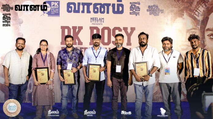 பாபாசாகேப் அம்பேத்கர் பிறந்த மாதமான ஏப்ரல் மாதத்தை தலித் வரலாற்று மாதமாக கொண்டாடும் விதமாக நீலம் பண்பாட்டு மையம் ஒருங்கிணைக்கும் 4- ஆம் ஆண்டு “வானம் கலைத் திருவிழா” சென்னை எழும்பூரில் உள்ள நீலம் புத்தக அரங்கில் கடந்த 05.04.2024 அன்று தலித் வரலாற்று மாதக் கண்காட்சியுடன் துவங்கியது. இதன் இரண்டாம் நிகழ்வாக PK ரோசி திரைப்பட விழா சென்னை பிரசாத் லேபில் முதல் நாளான 08.04.2024 அன்று இயக்குநர் பாலாஜி சக்திவேல் மற்றும் இயக்குநர் பா.இரஞ்சித் அவர்களால் பறை இசையுடன் துவங்கி வெகுசிறப்பாக நடந்து முடிந்தது.