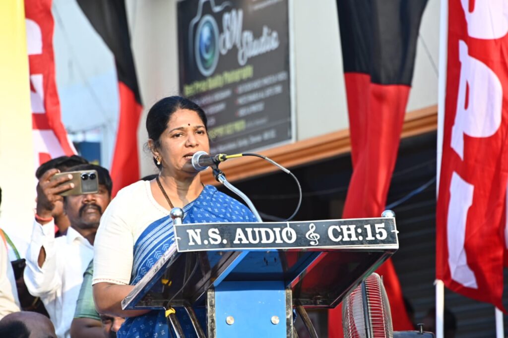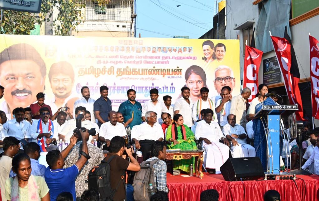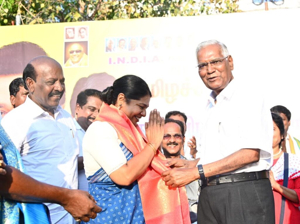 கனிமொழி கருணாநிதி பேசியது: இந்த தேர்தல் என்பது, நாம் அரசியல் அமைப்பு சட்டத்தைப் பாதுகாக்கக் கூடிய தேர்தல், நம் நாட்டின் பாதுகாப்பை உறுதிப்படுத்தக் கூடிய தேர்தலாகும், இந்நாட்டின் அடித்தட்டு மக்கள், சாமானிய மக்களின் பாதுகாப்பை உறுதிப்படுத்தக்கூடிய தேர்தல், பாஜக கையிலிருந்து நாம் நாட்டை மீட்டெடுக்கக்கூடிய ஒரு தேர்தல் ஆகும்.