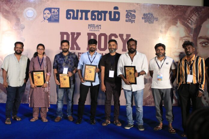 இயக்குனர் Dr.பிஜு அவர்கள் என் கதையை என் வாழ்வியலின் அடிப்படையில் இருந்து தான் எடுக்கப்படுகிறது. நான் எப்படி இருக்கிறேனோ அப்படியே என் படங்களும் இருக்கும் என பேசினார். இறுதியாக தண்டகாரண்யம் படத்தின் இயக்குனர் அதியன் ஆதிரை, பாட்டில் ராதா படத்தின் இயக்குனர் தினகரன், மேற்கு தொடர்ச்சி மலை படத்தின் இயக்குனர் லெனின் பாரதி, திரைக்கதையாசிரியர், எழுத்தாளர் தமிழ் எழுத்தாளர் தமிழ் பிரபா ஆகியோர்கள் கலந்துரையாடிய இயக்குனர்களுக்கு நினைவு பரிசை வழங்கினார்கள். இதனை தொடர்ந்து பல படங்கள் திரையிடப்பட்டு, PK ரோசி திரைப்பட திருவிழாவின் கடைசி நாள் இனிதே நிறைவடைந்தது.