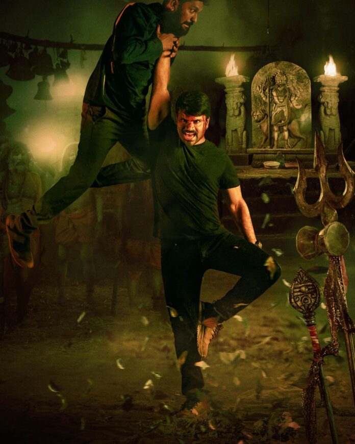 The first look is in tune with the title poster released recently. In the title poster, Lord Shiva’s imagery was indicated. And now, we see Ashwin Babu in his Raudra form, baying for the blood of villains. He is seen single-handedly holding a heavy-bodied goon and attempting to cast him away. Seen in the poster also is a Trident and the idol of a powerful divine. Action, thrills and sentiment can be expected from the movie.
