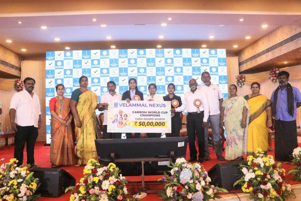 தங்களது சிறப்பான ஆட்டத்தால் தேசத்திற்குப் பெருமை சேர்த்த சாம்பியன்கள், வேலம்மாள் நெக்ஸஸ் குழுமத்தால் தலா ஐம்பது லட்சம் ரூபாய் ரொக்கப் பரிசாக ₹50,00000/- வழங்கப்பட்டது. இந்தப் பாராட்டுச் சின்னம், இந்தியாவில் விளையாட்டுத் திறமையை அங்கீகரிப்பதிலும் ஊக்குவிப்பதிலும் அமைப்பின் அசைக்க முடியாத அர்ப்பணிப்பைக் குறிக்கிறது.