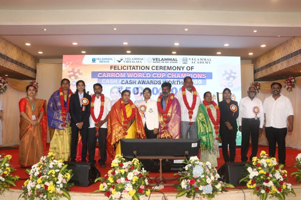 வேலம்மாள் நெக்ஸஸ் குழு உலக கேரம் சாம்பியன்களை அவர்களின் சாதனைகளுக்காக பாராட்டுகிறது!