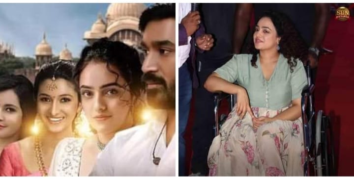 நடிகை நித்யா மேனன் சமீபத்தில் படிக்கட்டில் இருந்து தவறி விழுந்து கால் எலும்பை முறித்துக்கொண்டார். அதனால் தான் அவர் வீல் சேரில் தனுஷ் படத்தின் இசை வெளியீட்டு விழாவுக்கு வந்திருக்கிறார்.