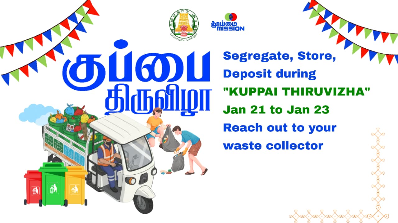 While the movement kicks off with the identifying, clearing and transforming of Garbage Vulnerable Points (GVPs) and awareness campaigns, the focus culminates in the Mass Collection Drive where people will deposit segregated dry waste from January 21st to 23rd, 2026 at Collection Points established by Local Bodies across Tamil Nadu.