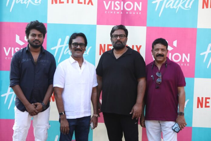 The shooting of the upcoming Tamil feature film Haiku commenced today with a formal pooja and first clap ceremony held at Eddiki. Celebrated filmmaker Director Ram, acclaimed for works like Peranbu and Taramani, gave the inaugural clap and extended his best wishes to the team, marking an auspicious beginning.