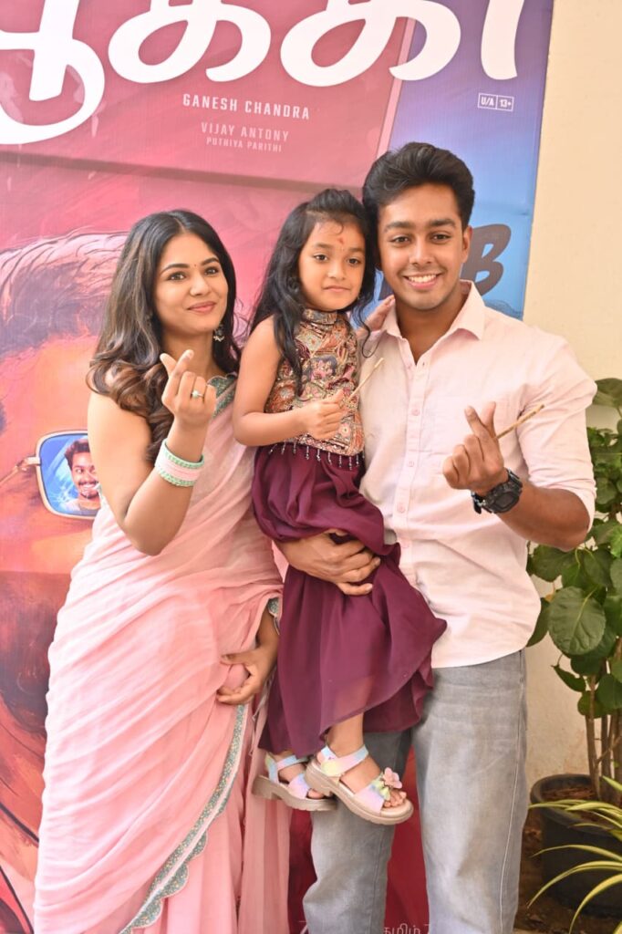 முதலில், இவ்வளவு பெரிய படத்தில் என்னை நம்பி, எனக்கு வாய்ப்பு தந்த விஜய் ஆண்டனி சாருக்கு என் மனமார்ந்த நன்றிகள். நாயகியாக இது எனது முதல் திரைப்படம். அதுவும் இவ்வளவு பெரிய படத்தில் நடிக்கும் வாய்ப்பு கிடைத்தது எனக்கு மிகப் பெரிய ஆசீர்வாதம். நான் உண்மையிலேயே மிகுந்த அதிர்ஷ்டசாலி. இயக்குநர் கணேஷ் சந்திரா சார் பற்றி சொல்லாமல் இருக்க முடியாது. ஒரு கலைஞருக்கு மிகவும் முக்கியமானது, சுதந்திரமாகவும் நிம்மதியாகவும் நடிக்க முடிவதுதான். அந்த நிம்மதியை முழுமையாக எனக்கு அளித்தவர் கணேஷ் சந்திரா சாரும், இந்த முழு குழுவும் தான். எத்தனை சிறிய காட்சிகளுக்காக எத்தனை முறை எடுத்தாலும், ஒரு நொடி கூட முகம் சுளிக்காமல் எப்போதும் ஊக்கம் அளித்தார்கள். அதற்காக என் மனமார்ந்த நன்றிகள். என்னுடன் நடித்த அஜய் — உங்களுக்கும் என் நன்றி. மிகவும் கனிவாகவும், சுதந்திரமாகவும் நடந்துகொண்டதால் இப்படத்தில் நடிக்க எனக்கு மிகவும் எளிதாக இருந்தது. அஷ்வின், லக்ஷ்மி அம்மா — அனைவருக்கும் என் மனப்பூர்வமான நன்றிகள். இந்த திரைப்படத்தை பிப்ரவரி 13 அன்று, உங்கள் நண்பர்கள் மற்றும் குடும்பத்தினருடன் திரையரங்கில் கண்டிப்பாக பார்த்து ஆதரிக்குமாறு அன்புடன் கேட்டுக்கொள்கிறேன். அனைவருக்கும் நன்றி.