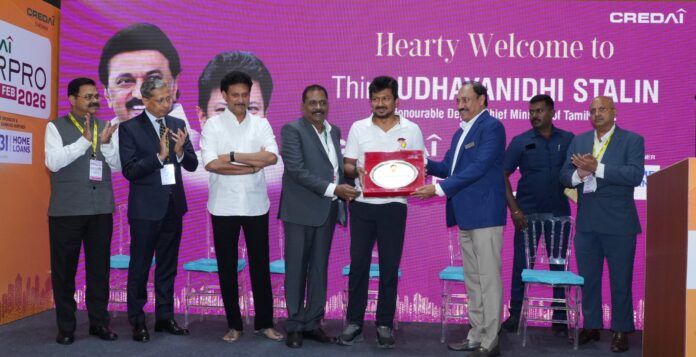 Chennai, 20th February 2026: The Hon’ble Deputy Chief Minister of Tamil Nadu, Thiru Udhayanidhi Stalin, inaugurated the 18th edition of CREDAI FAIRPRO 2026, the city’s most prestigious Property Fair, organised by the Confederation of Real Estate Developers’ Associations of India (CREDAI) Chennai, at the Chennai Trade Centre – New Building. The event witnessed the presence of key dignitaries from the Government of Tamil Nadu and members of CREDAI Chennai. The three-day property expo began today and will conclude on February 22, 2026.
