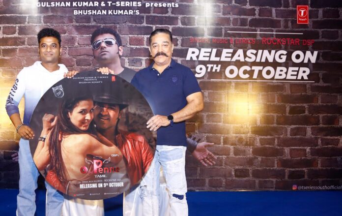 T- Series சார்பில் பூஷன் குமார் தயாரிப்பில் இசையமைப்பாளர் தேவிஸ்ரீபிரசாத் இசையமைத்து, பாடல் வரிகள் எழுதி, பாடி, நடனம் அமைத்து, நடித்து, இயக்கி இருக்கும் “ஓ பெண்ணே” பாடல் வெளியீட்டு விழா இன்று பத்திரிகை, ஊடக நண்பர்கள் முன்னிலையில் அரங்கேறியது. தமிழ் சினிமாவின் உச்ச நட்சத்திரமான உலகநாயகன் கமல்ஹாசன் இப்பாடலை வெளியிட்டார்.