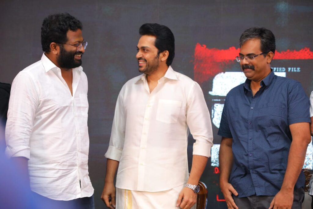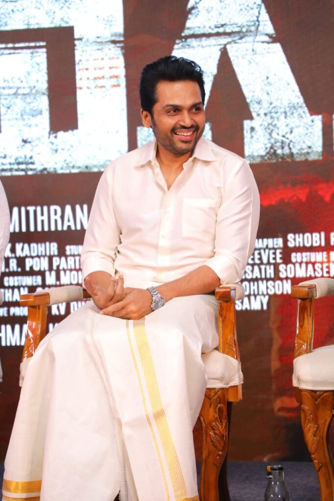 கார்த்தி சார்.. மேக்கப் போடுவதிலிருந்து படப்பிடிப்பு தளத்திற்கு வருவது வரை அவருடைய ஈடுபாட்டை பார்த்து மிரண்டு போனேன். அவரின் கடின உழைப்பு இப்படத்தை இன்னும் சிறப்பாக கொடுக்க வேண்டும் என்று தோன்றியது. ஒரு பாடலுக்கு 7 மணி நேரம் செலவழித்து இப்பாடலை நானே பாடினால் தான் நன்றாக இருக்கும் என்று பாடினார். அவரின் அர்ப்பணிப்பு தான் இப்படம் நன்றாக வருவதற்கு முக்கிய காரணம் என்றார்.