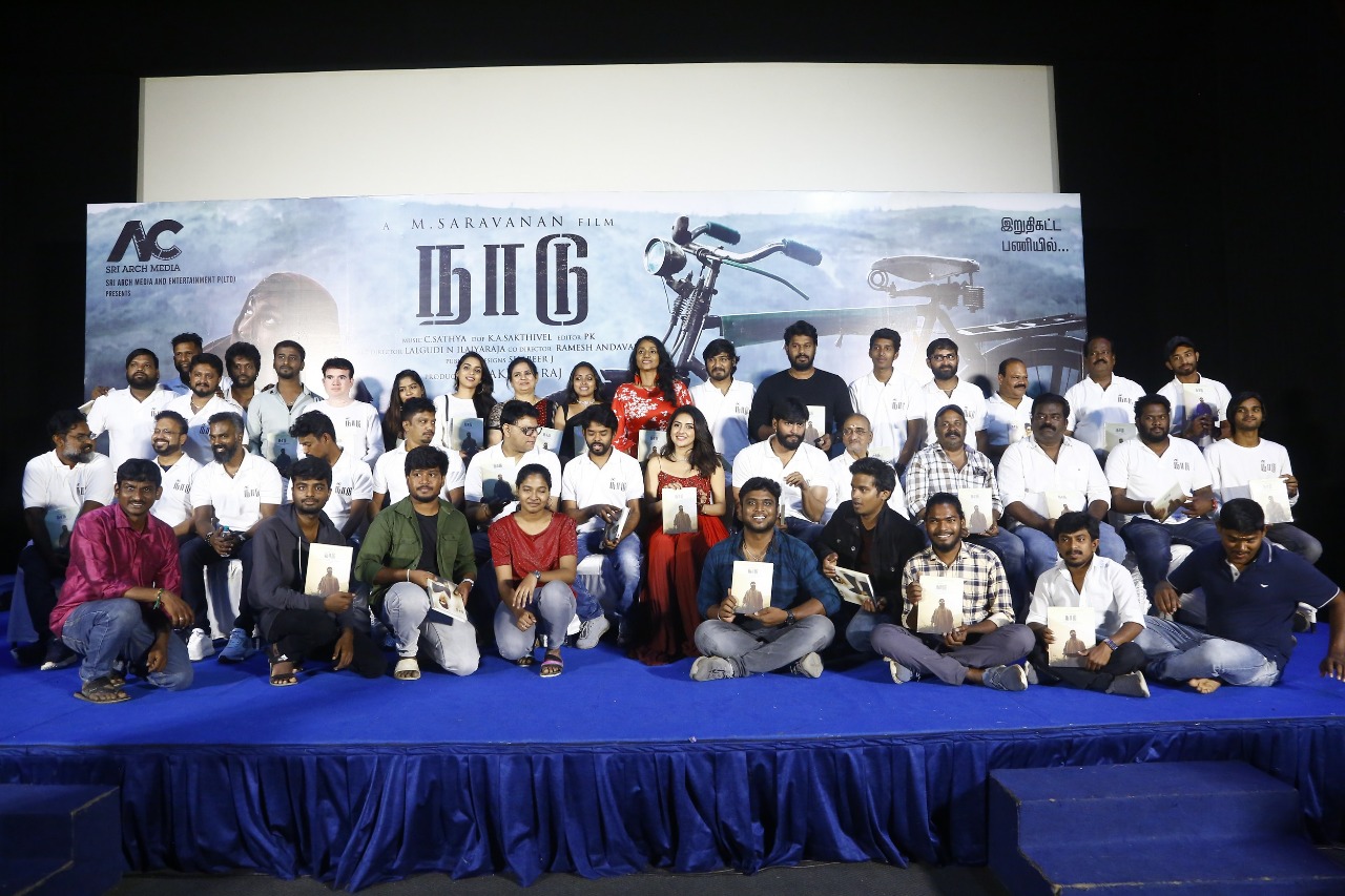 ஸ்ரீ ஆர்க் மீடியா சார்பில் சக்ரா மற்றும் ராஜ் இருவரும் இணைந்து தயாரித்துள்ள படம் ‘நாடு’. இன்றைக்கும் ரசிகர்கள் மனதில் இருந்து நீங்காத ‘எங்கேயும் எப்போதும்’ என்கிற சூப்பர்ஹிட் படத்தை கொடுத்த இயக்குனர் சரவணன் இந்த படத்தை இயக்கியுள்ளார். பிக்பாஸ் நிகழ்ச்சி மூலம் புகழ்பெற்ற நடிகர் தர்ஷன் கதாநாயகனாக நடிக்க, அழகுச்சிலை மகிமா நம்பியார் கதாநாயகியாக நடித்துள்ளார்.