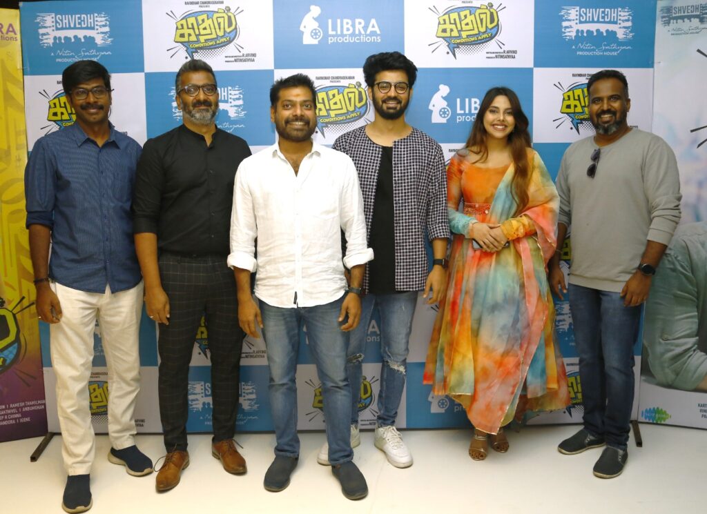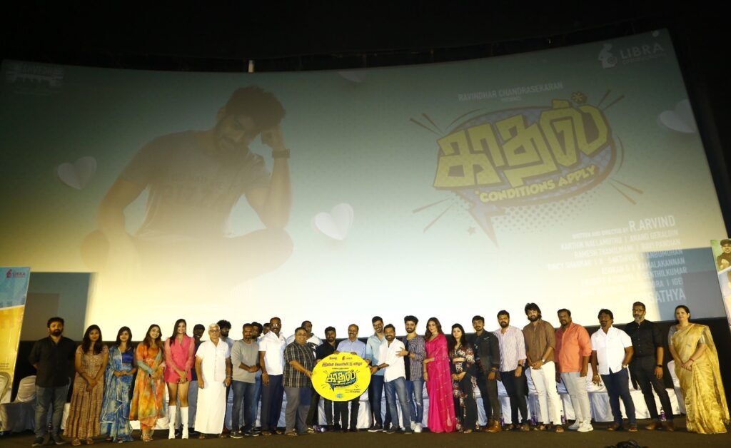 “Kaadhal Conditions Apply”, a trendy feel-good youthful romantic entertainer, produced by Shvedh, a Nitin Sathyaa Production House and is presented by Libra Productions Ravindhar Chandrasekaran. The film is directed by Aravind, and features Mahat in the lead role. While the film is all set to hit screens shortly, the audio launch was held this morning in Chennai that was attended by the eminent personalities and the film’s crewmembers.