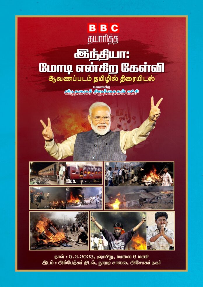 சங் பரிவாரக்கும்பல் செய்த படுகொலைகளை அம்பலப்படுத்தும் விதமாக பிபிசி நிறுவனம் ஆவணப்படம் தயாரித்து வெளியிட்டது.