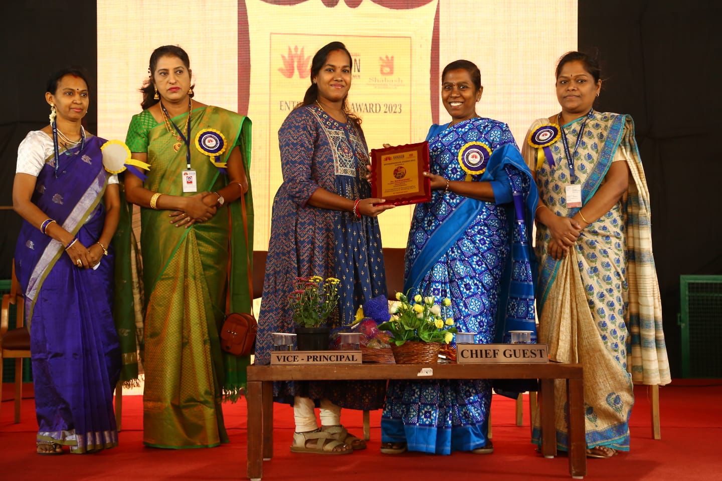 SHABASH, the Entrepreneurship Development Cell of Shri Shankarlal Sundarbai Shasun Jain College for Women, T.Nagar organised ‘Shasun Bazaar 2023 – Galaxy of Merchandising at the college premises. The Shasun Bazaar was inaugurated by the Chief Guest, Tmt. S. Madhumathi, IAS, Managing Director, Tamilnadu Small Industries Corporation Ltd. The inaugural ceremony started with the prayer and lighting of the lamp. Our Vice Principal Dr. S. Rukmani delivered the welcome address and felicitated the Chief guest. Dr. M. Malarkodi, Director of Shabash introduced the Chief guest. Tmt. S. Madhumathi appreciated the thought process of Shabash in producing job givers rather than job seekers. She spoke on creating a thriving business atmosphere that would contribute to the economic development of the country and conveyed her regards to all the young entrepreneurs of Shasun for taking up a big challenge of becoming a successful women entrepreneur. The Keynote address was followed by the Shasun Bazaar report which was presented by Dr. G. K. Lavanya, Coordinator of Shabash. The former students of Shasun College, Ms. Rajeshwari, founder of Chennai Wedding Florist (Batch 2014-17) and Ms. Sumathi, Makeup artist (Batch 2014-17) won the Best Entrepreneur Award 2023.